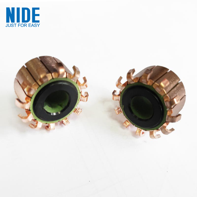 Hook Commutator para electrodomésticos aplícase principalmente en máquinas de corrente continua como dínamos ou como se lles chama xeradores de CC e moitos motores de CC, así como motores universais. Ao invertir a dirección da corrente nos enrolamentos xiratorios cada media volta, prodúcese unha forza de rotación constante que se denomina par. Nun xerador o conmutador colle a corrente xerada nos devanados, invertendo a dirección da corrente con cada media volta, servindo como rectificador mecánico para converter a corrente alterna dos devanados en corrente continua unidireccional no circuíto de carga externa.